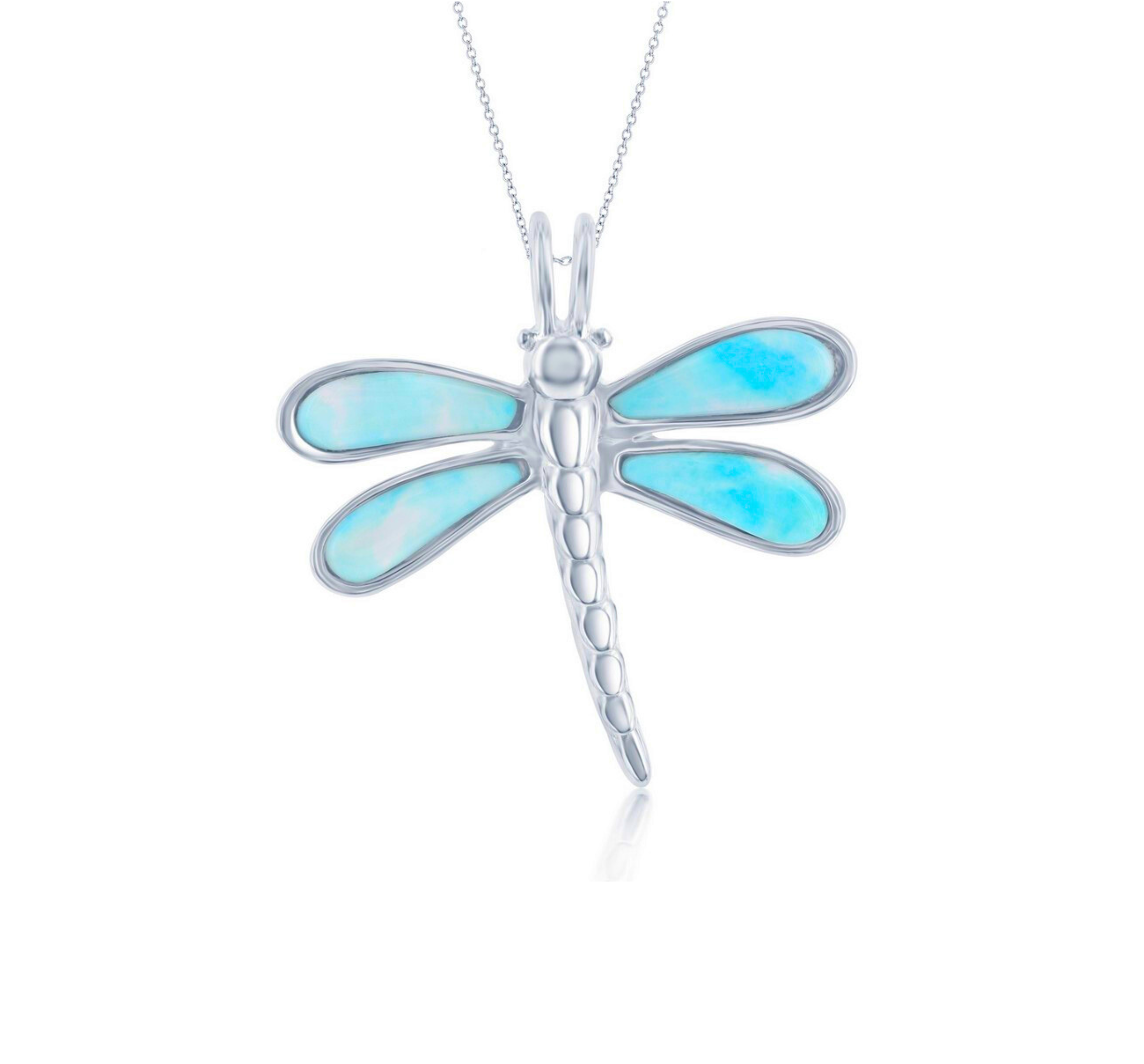 Larimar Large Dragonfly Necklace (w/Chain)