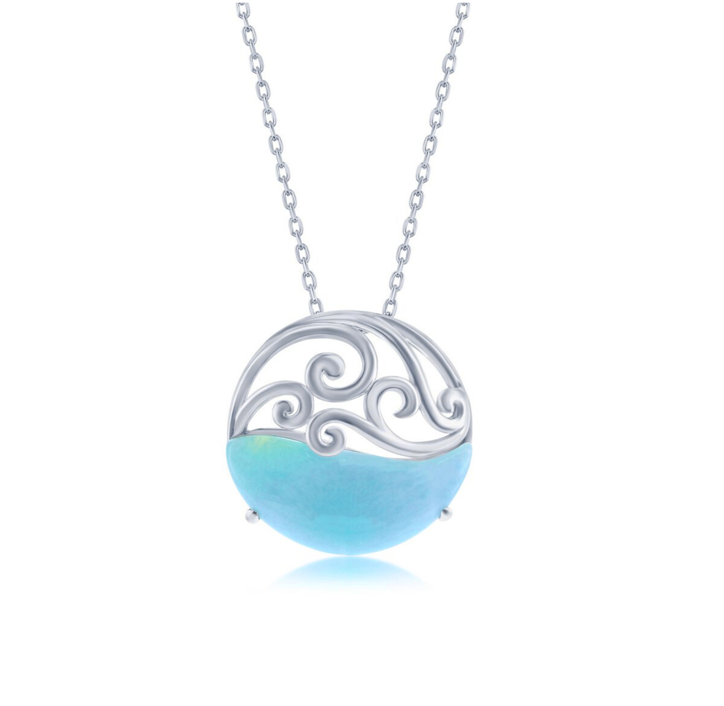 Larimar Round Waves Necklace (w/Chain)